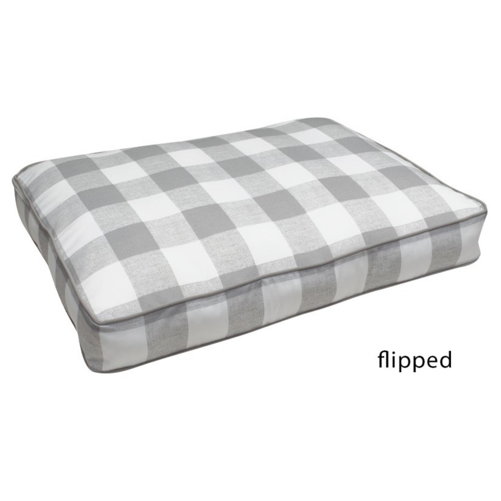 This classic rectangular pet bed is handcrafted in a boutique shop located in Kansas City to offer a truly revolutionary interpretation of pet furniture, incorporating the highest quality components and fabrics. The result is a traditional, yet unconventional pet bed that matches your dog's (or your) personality, while also offering the ultimate in comfort and durability.