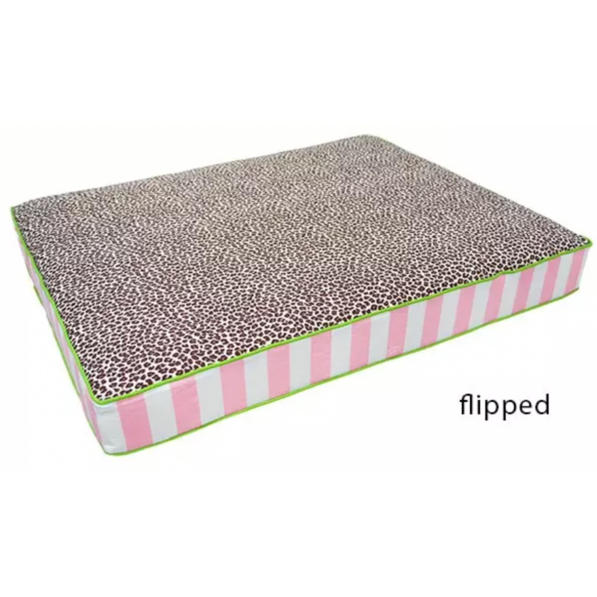 *Please note that this particular bed has been pre-designed for simplicity, but if you would like a list of additional custom fabrics and colors that you can use to personalize your own bed, please reach out to us. Also, the leopard print on the bottom fabric is slightly larger than pictured. Please reach out if you would like to see a sample of the fabric before ordering.