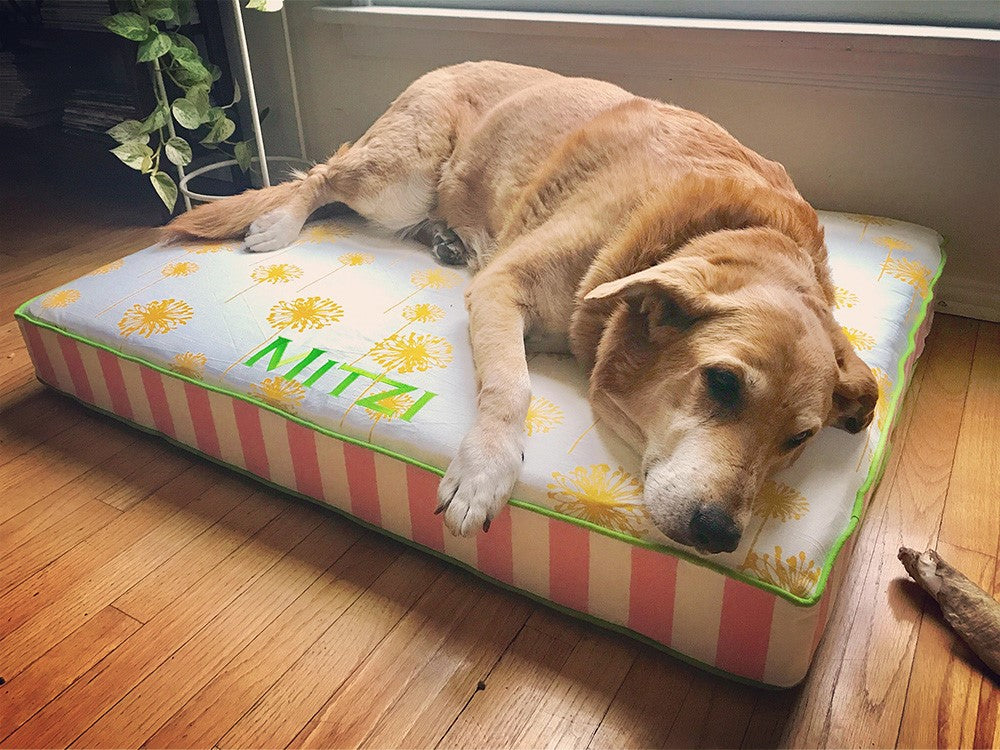 This classic rectangular pet bed is handcrafted in a boutique shop located in Kansas City to offer a truly revolutionary interpretation of pet furniture, incorporating the highest quality components and fabrics. The result is a traditional, yet unconventional pet bed that matches your dog's (or your) personality, while also offering the ultimate in comfort and durability.