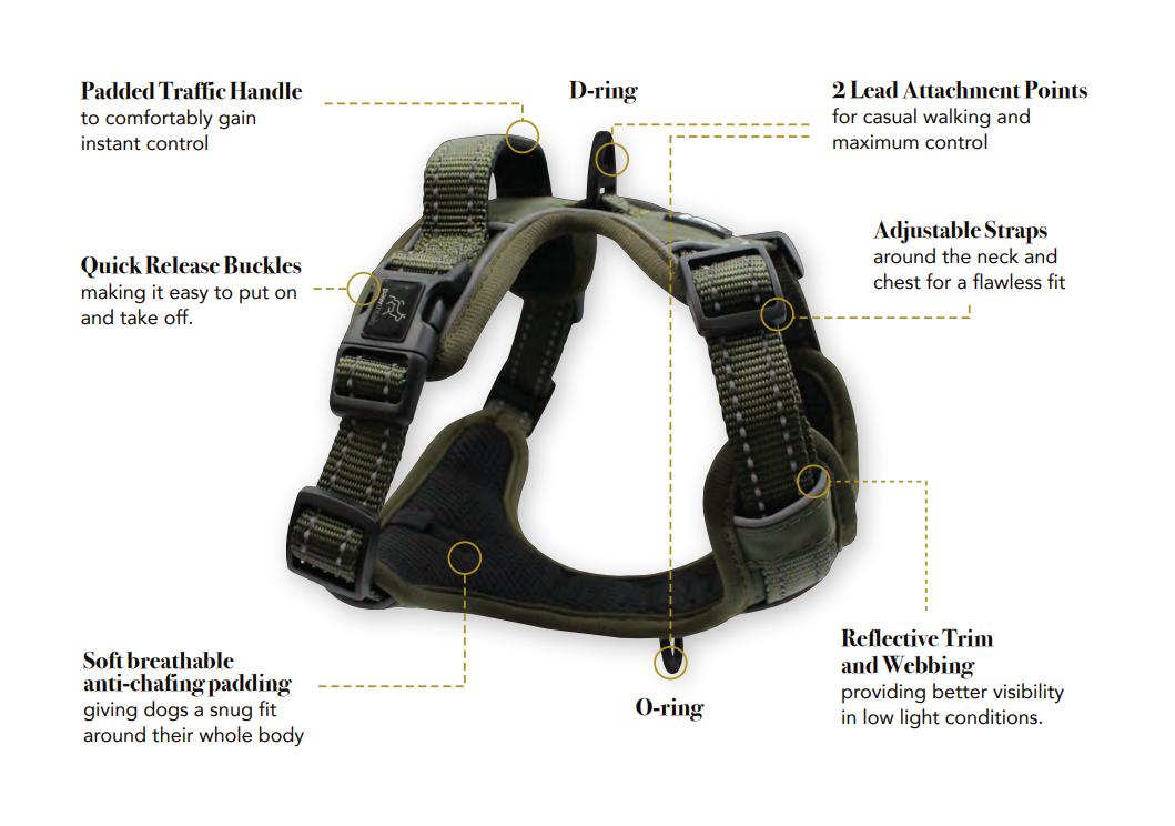 Your dog will feel secure and comfortable wearing our gear, giving you extra peace of mind. Making walking even more enjoyable for you and your dog.