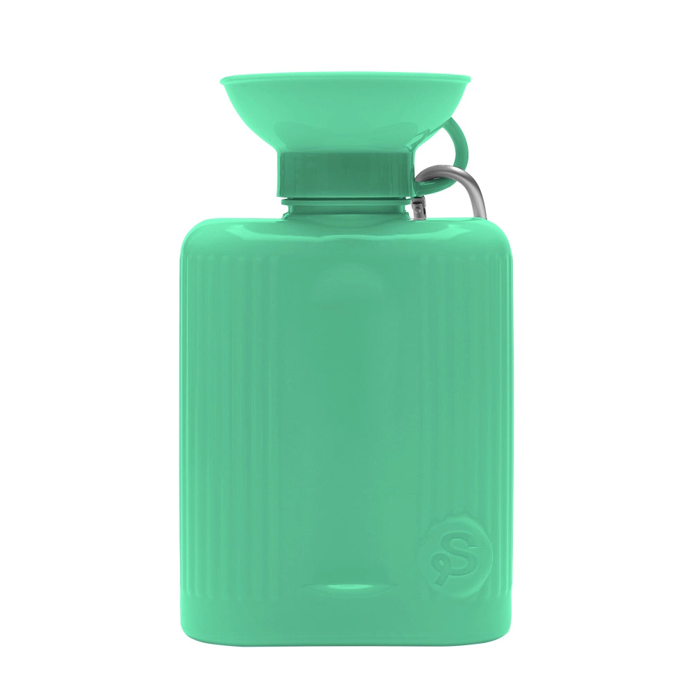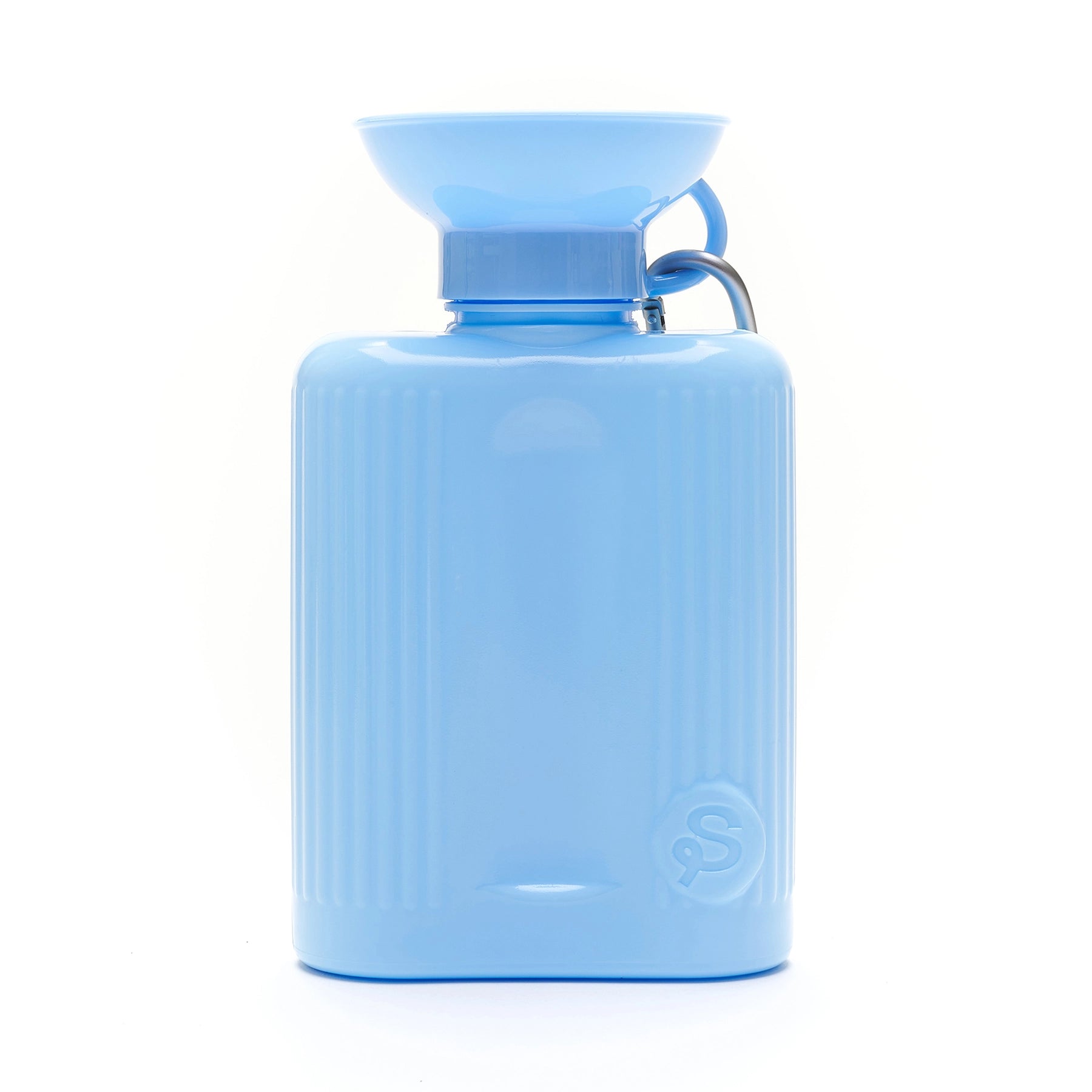 Keep your pup hydrated during any excursion with the Springer Growler Travel Bottle. This 44 ouncer is larger than most travel water bottles that you'll be able to find! The clever design allows your dog to drink from the attached bowl without wasting a drop. Formerly known as the AutoDogMug by Highwave, squeeze the bottle, and water fills the bowl. Release your squeeze when your dog is done drinking and the excess water drains back into the bottle.