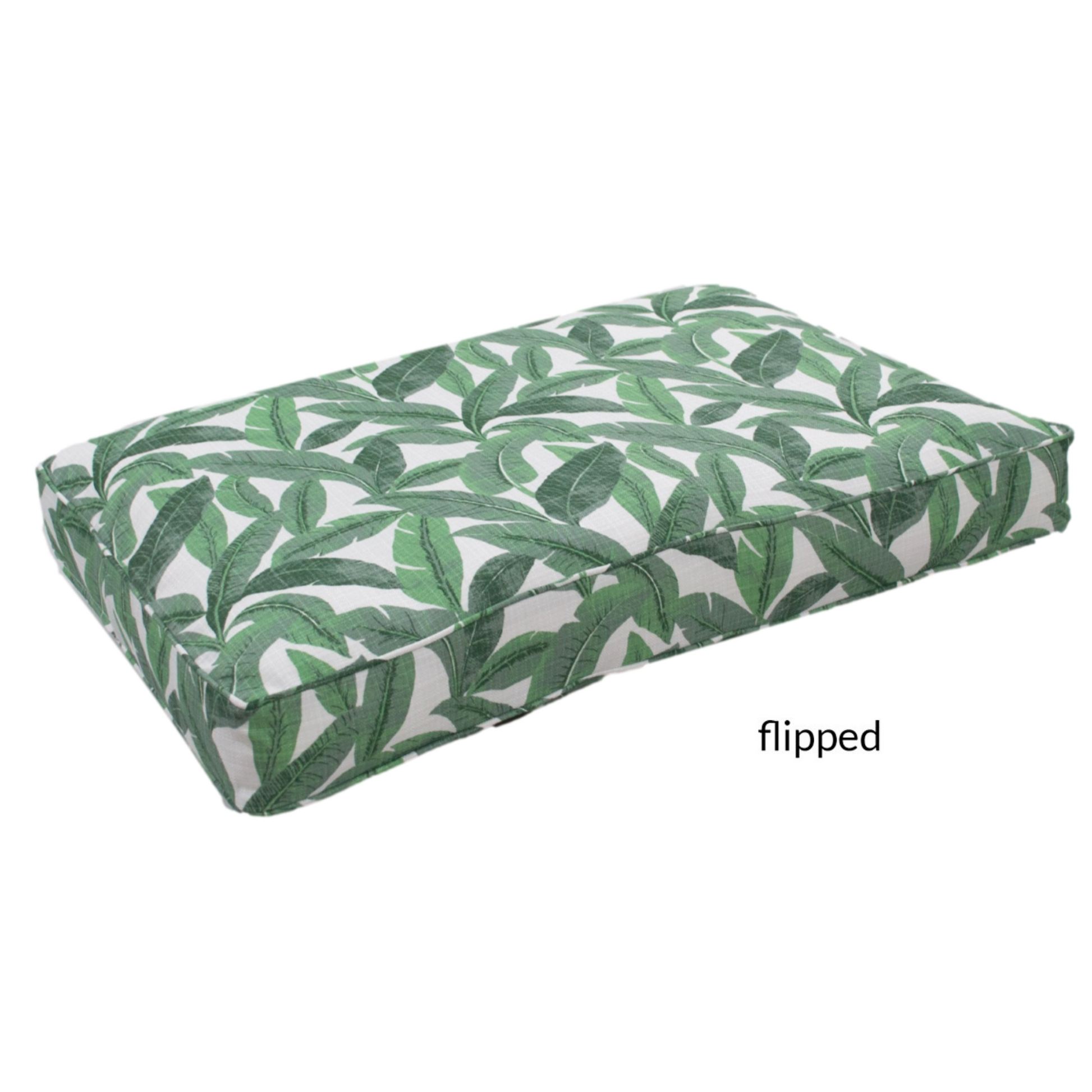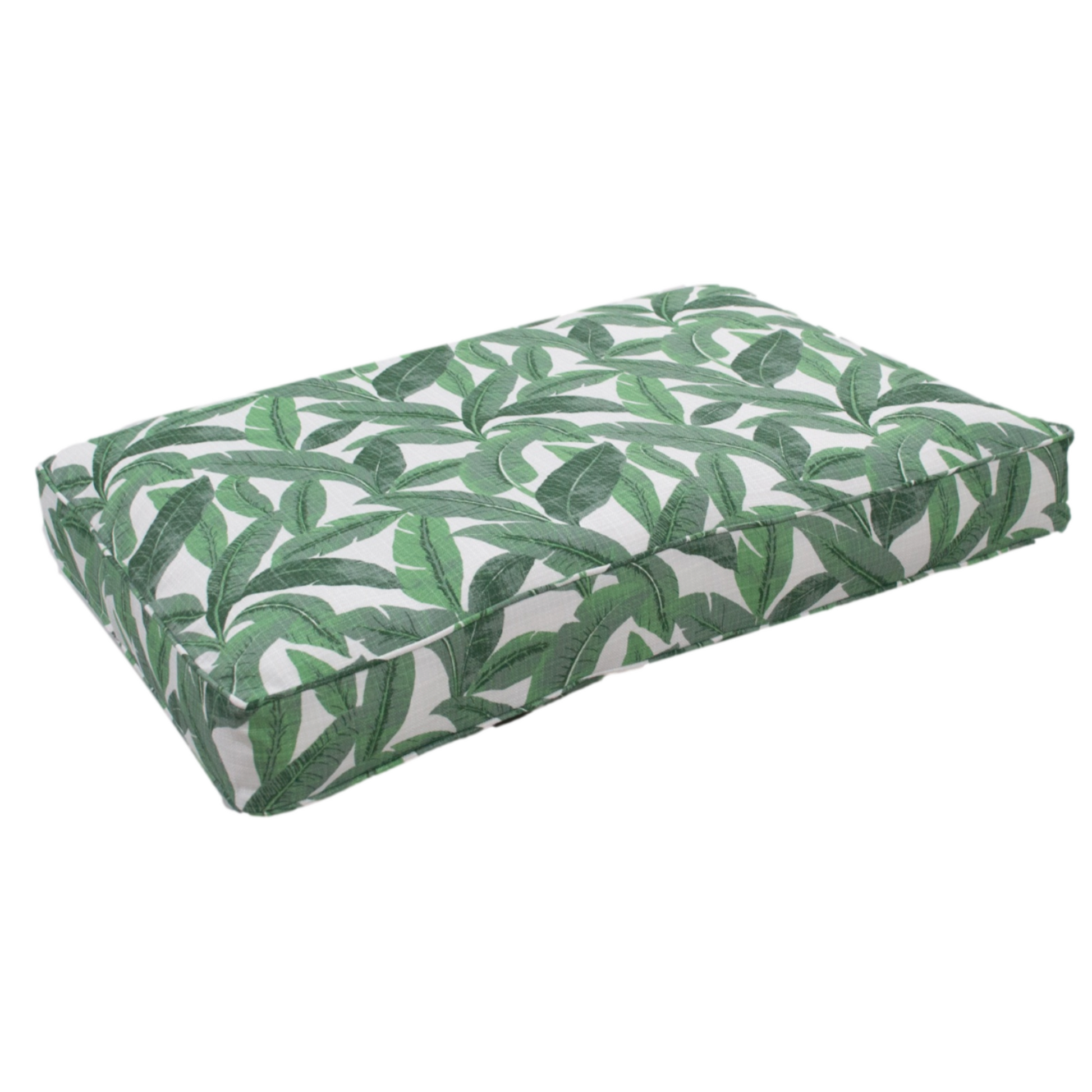 Jungles can tell two tales (tails?). They can be soothing, or they can be just a tiny bit wild. Sounds about like your big dog, right? Constructed completely of water repellent polyester and cotton Jungle Mirage Luxe fabric rated between 25,000 and 49,000 Double Rubs (15,000 is considered heavy use), the top and bottom fabric, banding (the sides/"depth" of the bed), and accent cording are no pushovers. The quality doesn't sacrifice comfort, with three different inserts to choose from. Your big pooch will, no doubt, be the king/queen of the jungle on this piece!