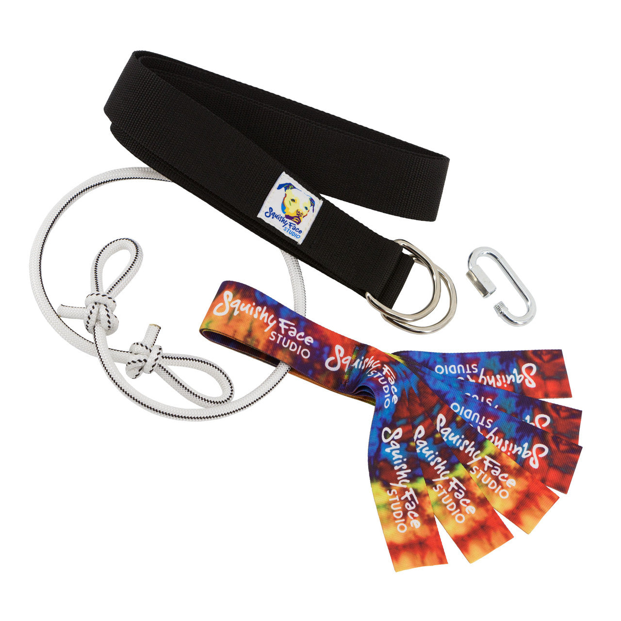 The durable polyester tug is soft on your dog’s mouth, and is MUCH safer than rope tugs, which sometimes have easily-ingested rope strands. With a triple layer handle at one end, 6 tassels, and an overall length of about 12.5 inches, the tug is perfect for any size pooch! The 2” wide polypropylene webbing strap has the strength of heavy chain, and its design ensures that your dog can pull all day without causing damage to your tree's bark! Marine-grade bungee cord ensures that tugging force won't end your fun early. The cord also features “Perfection Loops” tied at the end to eliminate extra connectors, and they function so that they only become tighter with use.