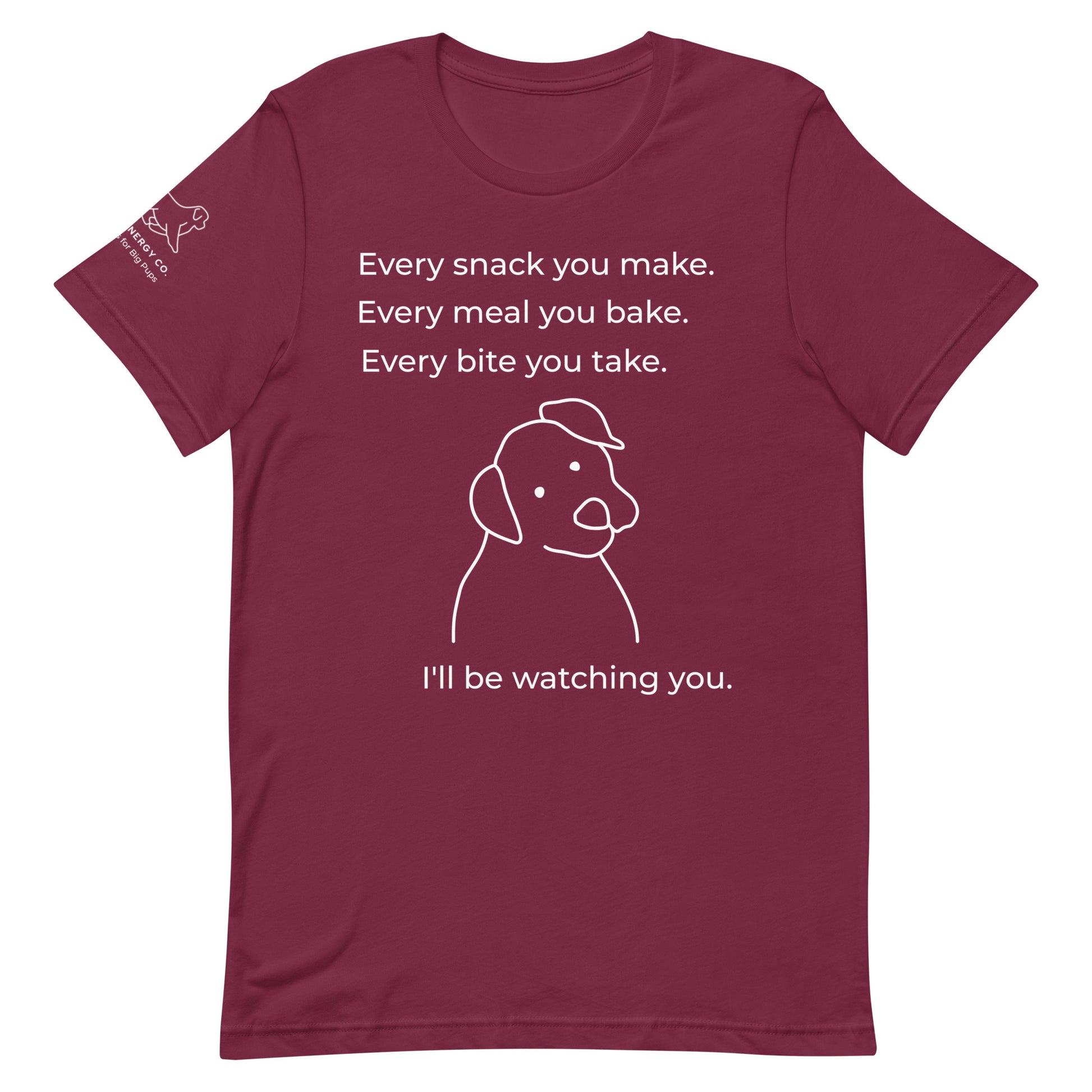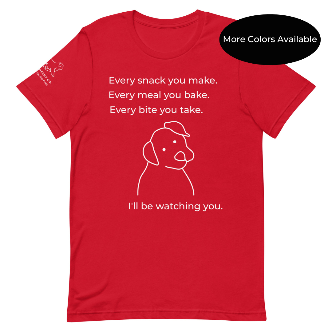 *Please note that the color of the back of your t-shirt will match the color that you select in the dropdown (they won't all have red backs, as festive as that seems).