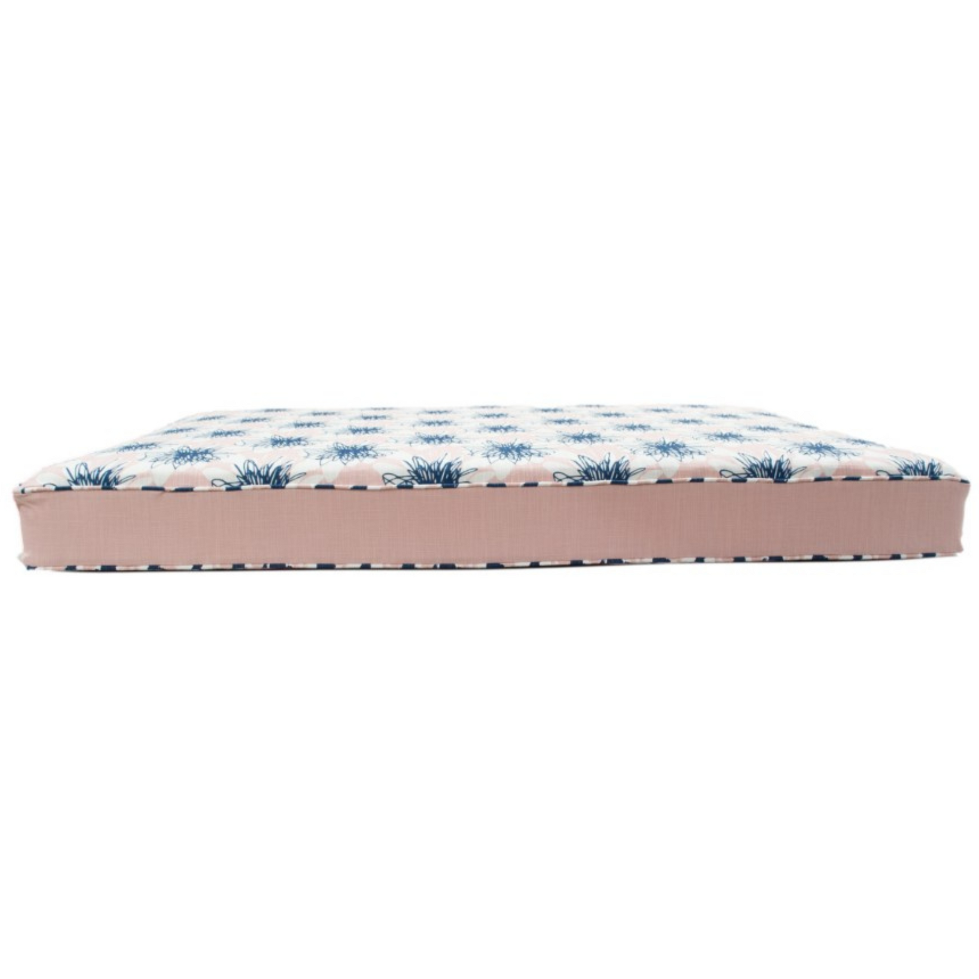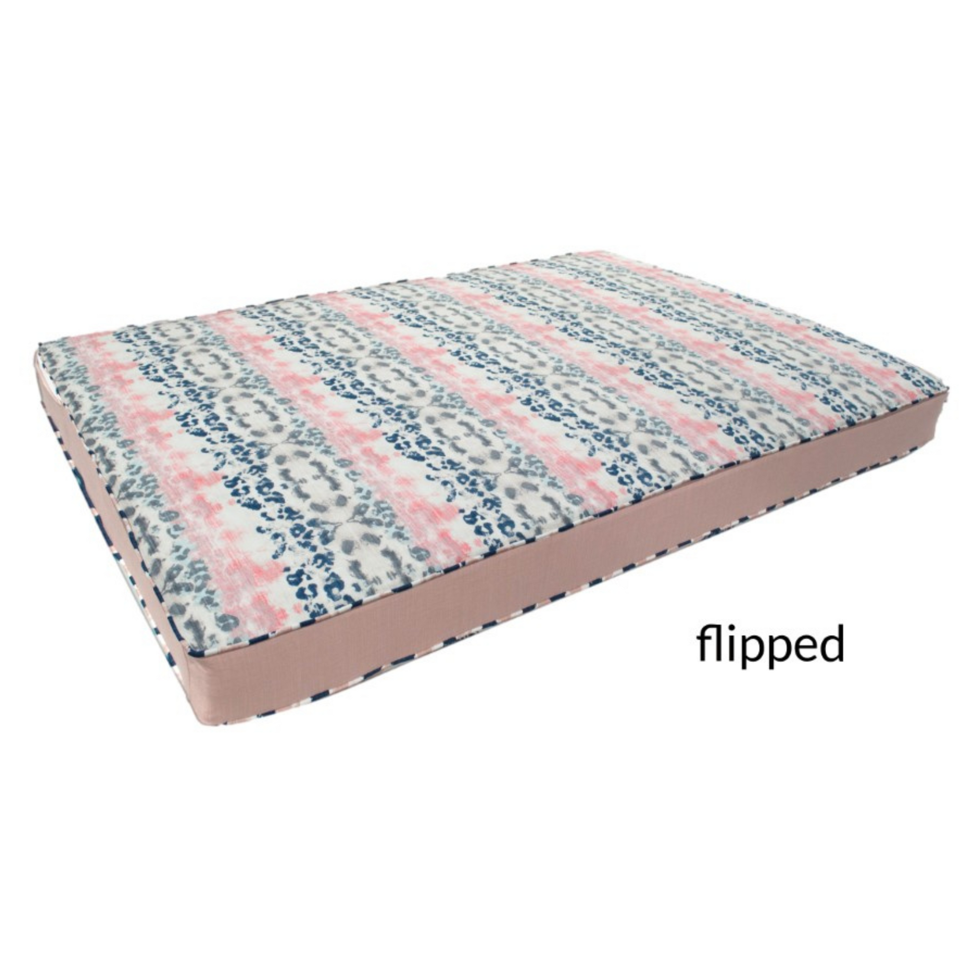 Fun. Cute. Comfy. Durable. This one checks 'em all off. Your big pup will thank you when they plop down into this little (huge) slice of heaven. With durable Unity Blush Slub Canvas and fun Mali Fusion Slub Canvas fabric rated between 25k+ and 49k Double Rubs (15,000 is considered heavy use) on top and bottom, it's a statement piece in any room. Plato Blush Slub Canvas accent cording and Solid Blush Slub Canvas cotton banding (the sides/"depth" of the bed) come together to create a bed that your pup has been dreaming of!